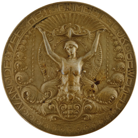 randschrift: EENIGHEYT VERMAGH VEEL; idem in spiegelbeeld tekst in veld: UITGEREIKT AAN J. BETLEM TER GELEGENHEID VAN HET 25 JARIG LIDMAATSCHAP 1953